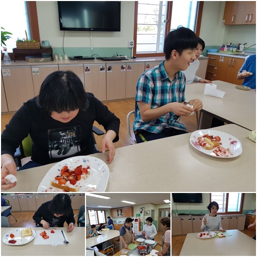주간보호 1반에서는 체험(요리)활동으로 딸기 토스트를 만들었습니다.