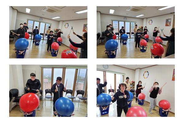 네박자, 찐이야, 황진이 등 음악에 맞춰 짐볼 난타를 하였습니다.