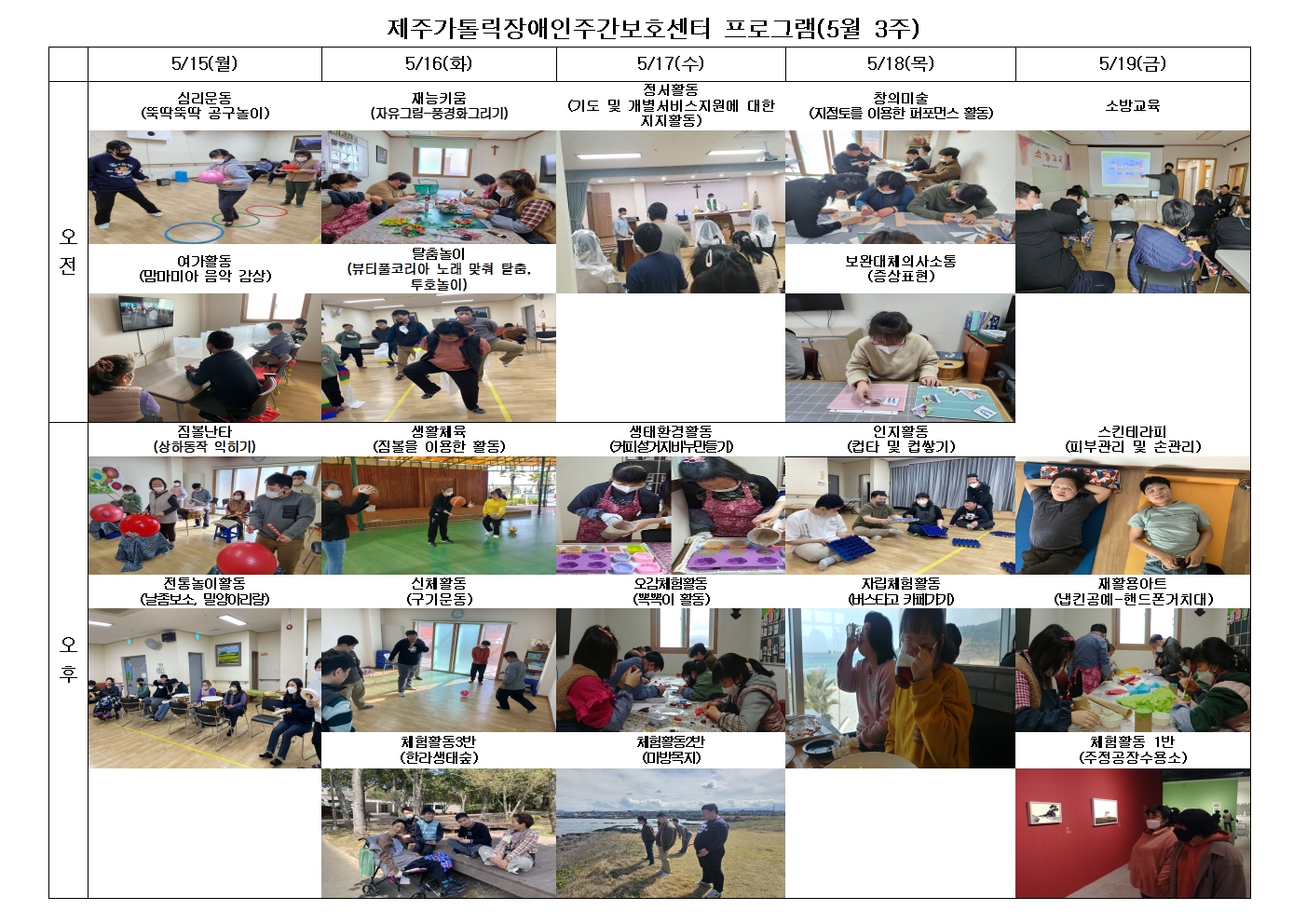 • 제목 제주가톨릭장애인주간보호센터 주간일정안내 5월3주