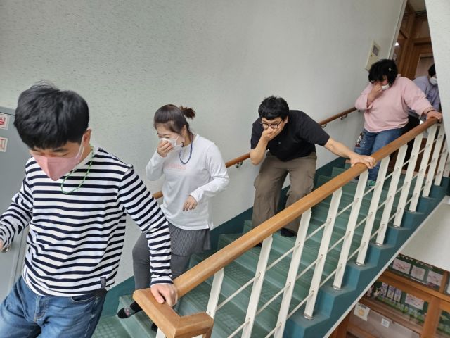 소방교육으로 화재 발생 시 대응방법과 비상대피훈련 진행하였습니다.