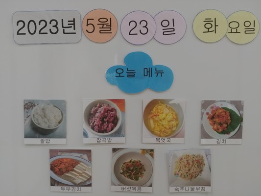 쌀밥, 잡곡밥, 북엇국, 김치, 두부김치, 버섯볶음, 숙주나물무침