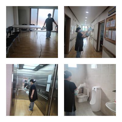 센터 내 1~4반, 화장실, 사무실, 전체프로그램실, 승강기 등 소독을 하였습니다.