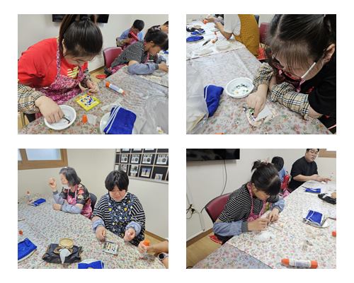 생활공예활동으로 모자이크 타일과 cd를 활용하여 컵 받침대를 만들었습니다.
