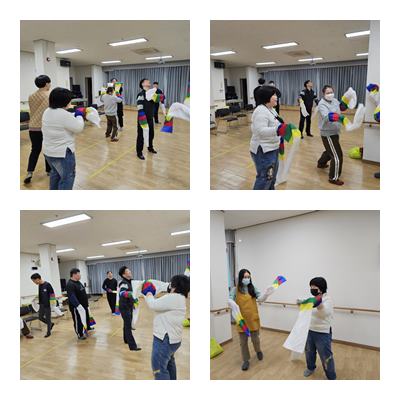 전통놀이 한삼춤과 제기차기하였습니다.