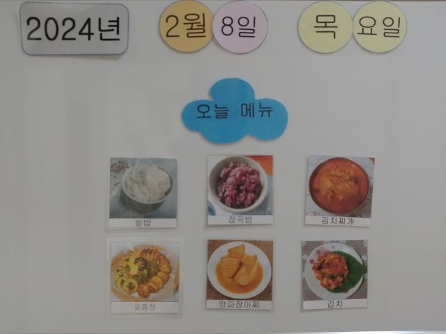 쌀밥, 잡곡밥, 김치찌개, 모듬전, 장아찌, 김치