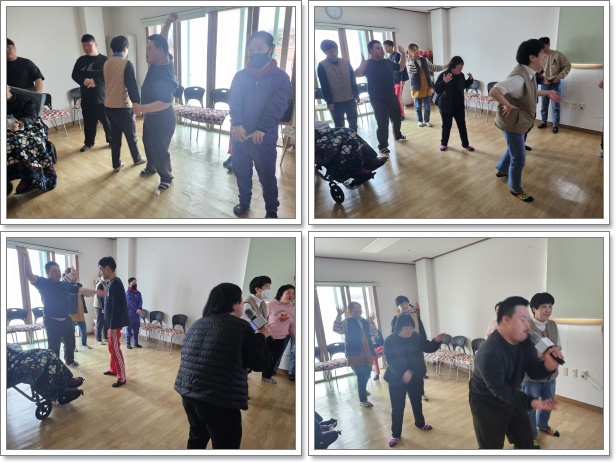 금일 음악활동으로 트로트 음악을 부르며 그에 맞춰 춤을 추었습니다.