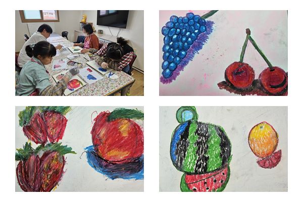 재능키움활동으로 크레파스와 오일파스텔 사용 시 색감과 느낌을 알아보고 자신의 생각하는 대로 과일을 표현하는 시간을 가졌습니다.