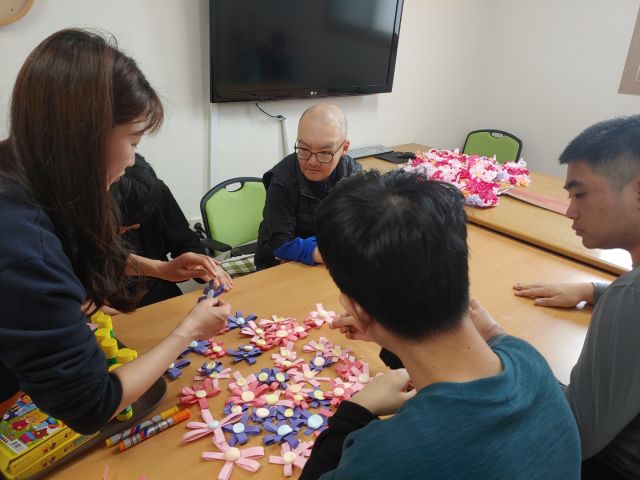아트활동 시간에 부활바구니에 들어갈 꽃 장식을 같이 만들었습니다.
