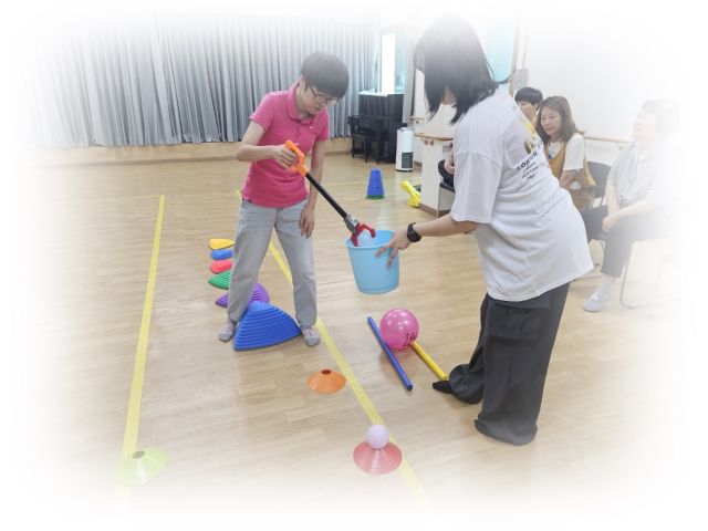 심리운동으로 징검다리 건너기 및 2인3각게임을 하였습니다.