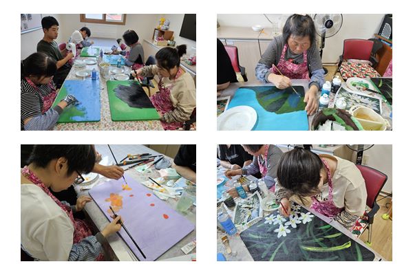 폐도마로 캔퍼스처럼 활용하여 아크릴 물감으로 밑 바탕를 채색하고 각자 그리고 싶은 그림을 그렸습니다.