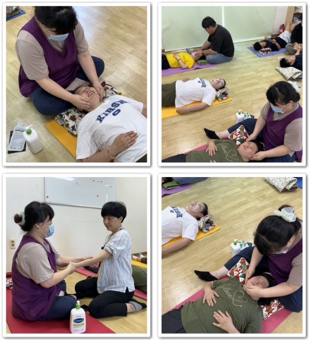 스킨테라피로 마사지와 마스크팩을 하며 휴식을 취하였습니다.