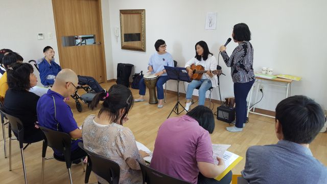 끌림소리 봉사자님들의 연주에 맞춰 신나게 노래 불러봅니다~~