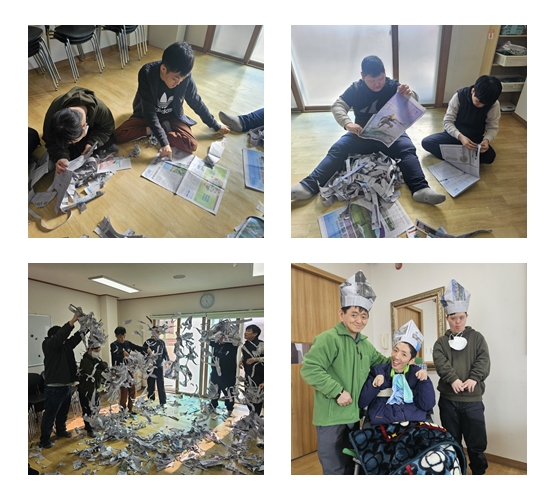 오감체험으로 신문지를 활용한 찢기, 접기, 뿌리기 활동을 하였습니다.