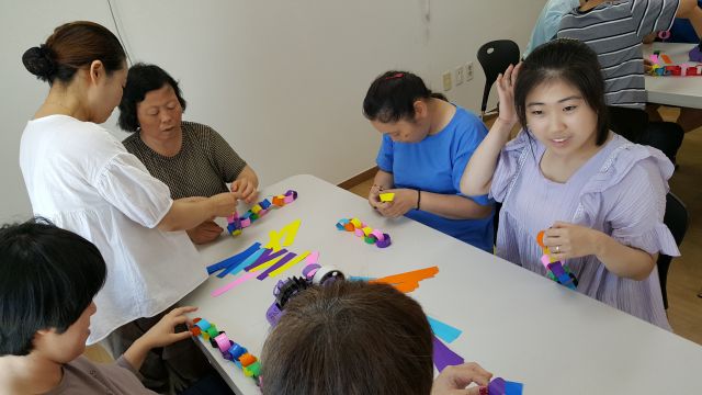 색종이 목걸이.. 진지하게 만들고 있지요? ^^