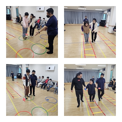 심리운동으로 점프, 짐볼굴리기, 줄다리를 하였습니다.