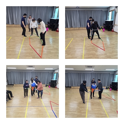 심리운동으로 협동하여 옮기기 및 2인3각활동을 하였습니다.