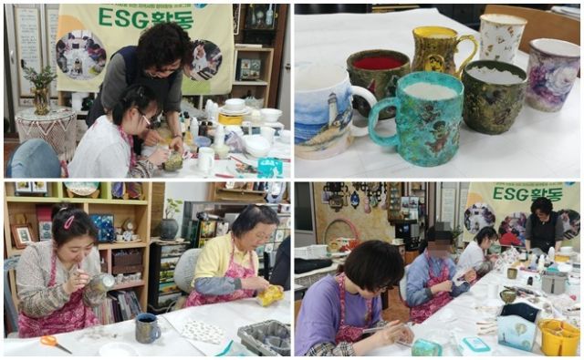 재활용공예로 오래된 물컵을 리폼하여 꽃병과 화분을 만들었습니다.