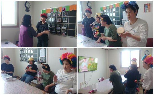 센터에서 노래방 체험 하였습니다.