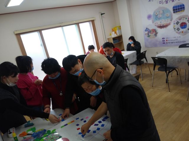미술활동으로 만다라 대형 꽃병만들기와 알록달록 한복 족자 만들기를 하였습니다.