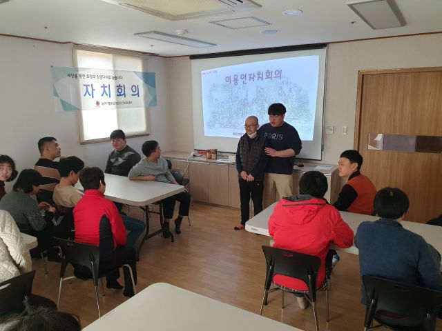 이용인자치회의를 진행하여 5월 체험활동 장소 및 환경사랑실천을 선정하는 시간을 가졌습니다.