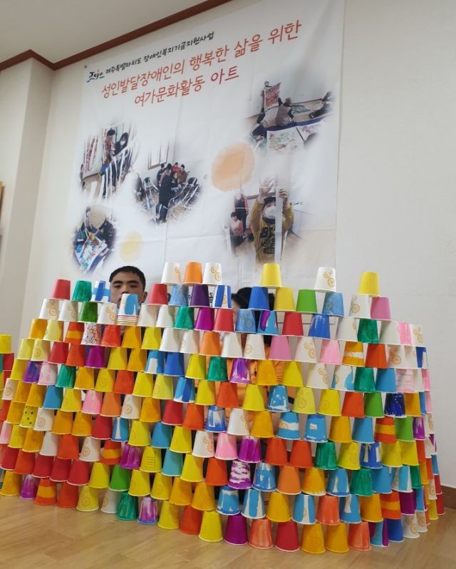 아슬아슬 종이컵 쌓기놀이를 했습니다.