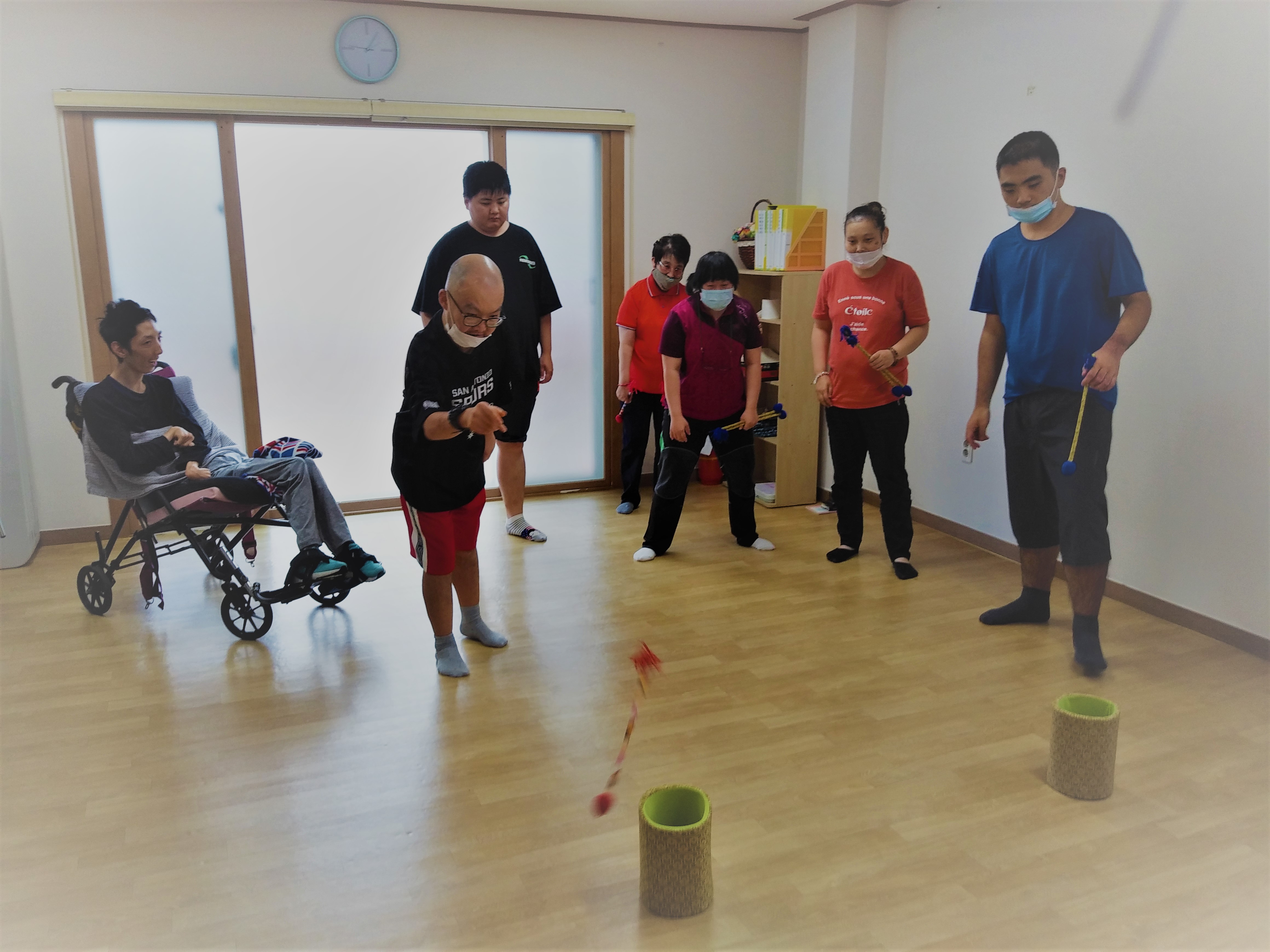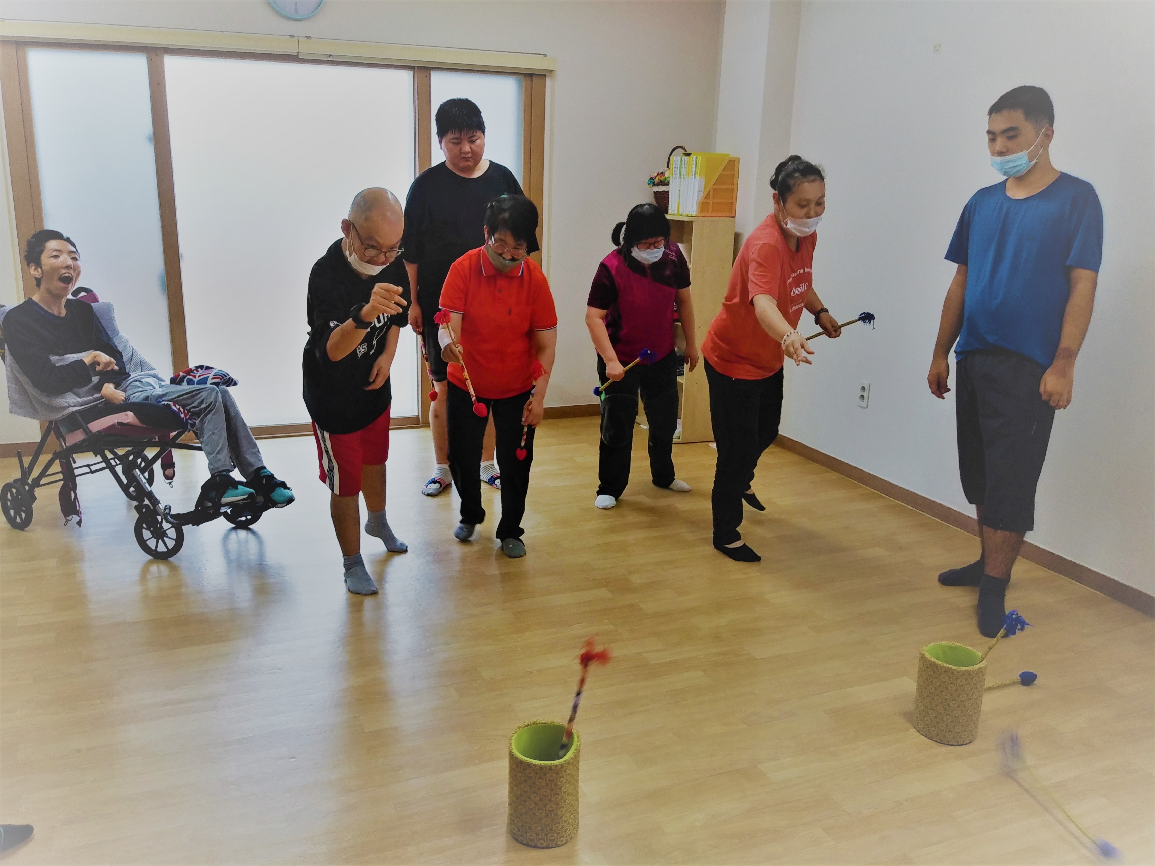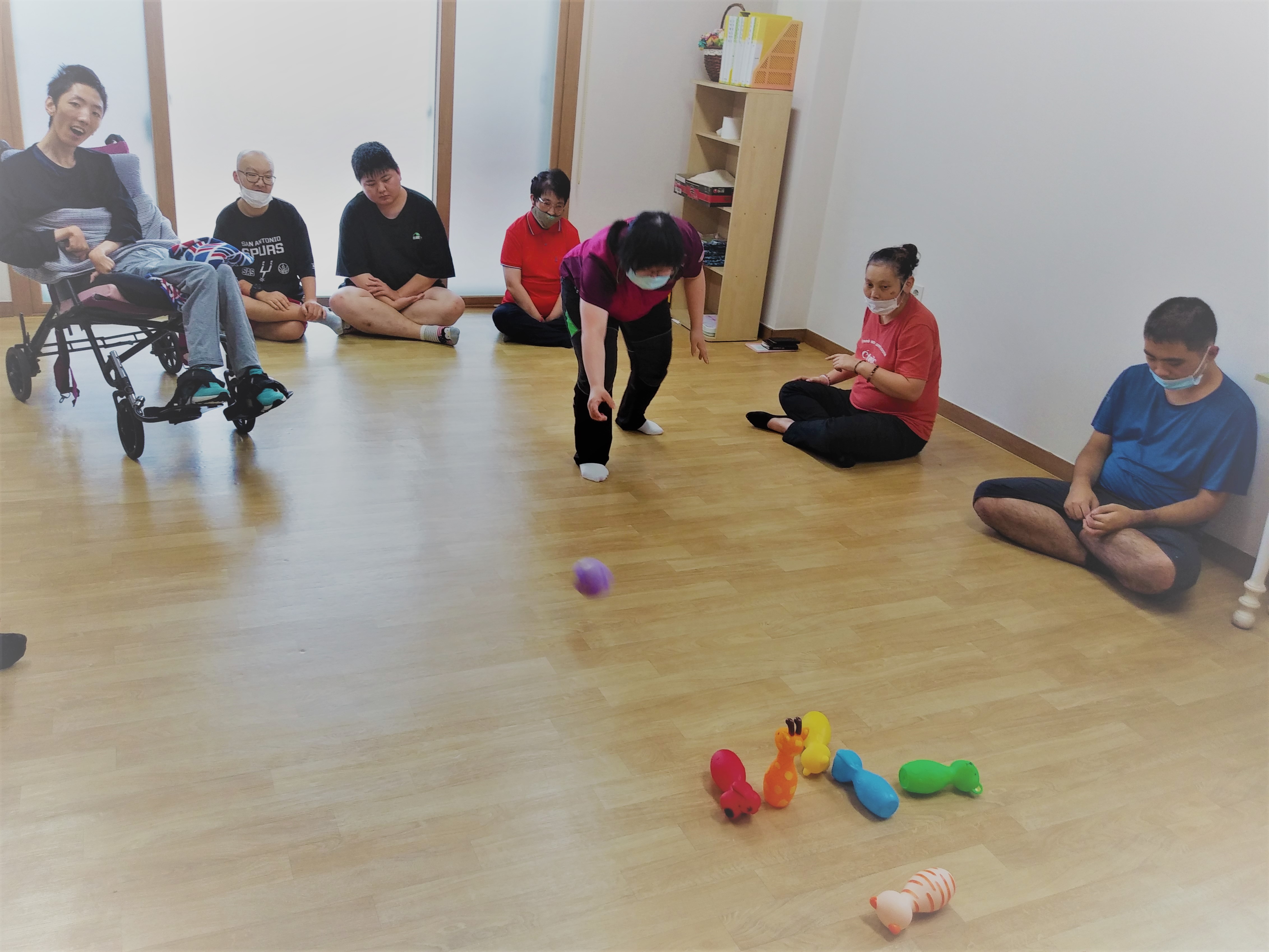 이용인들의 공놀이를 하고 싶다하여 의견을 수렴하여 공놀이와 볼링, 투호놀이 활동을 하였습니다.