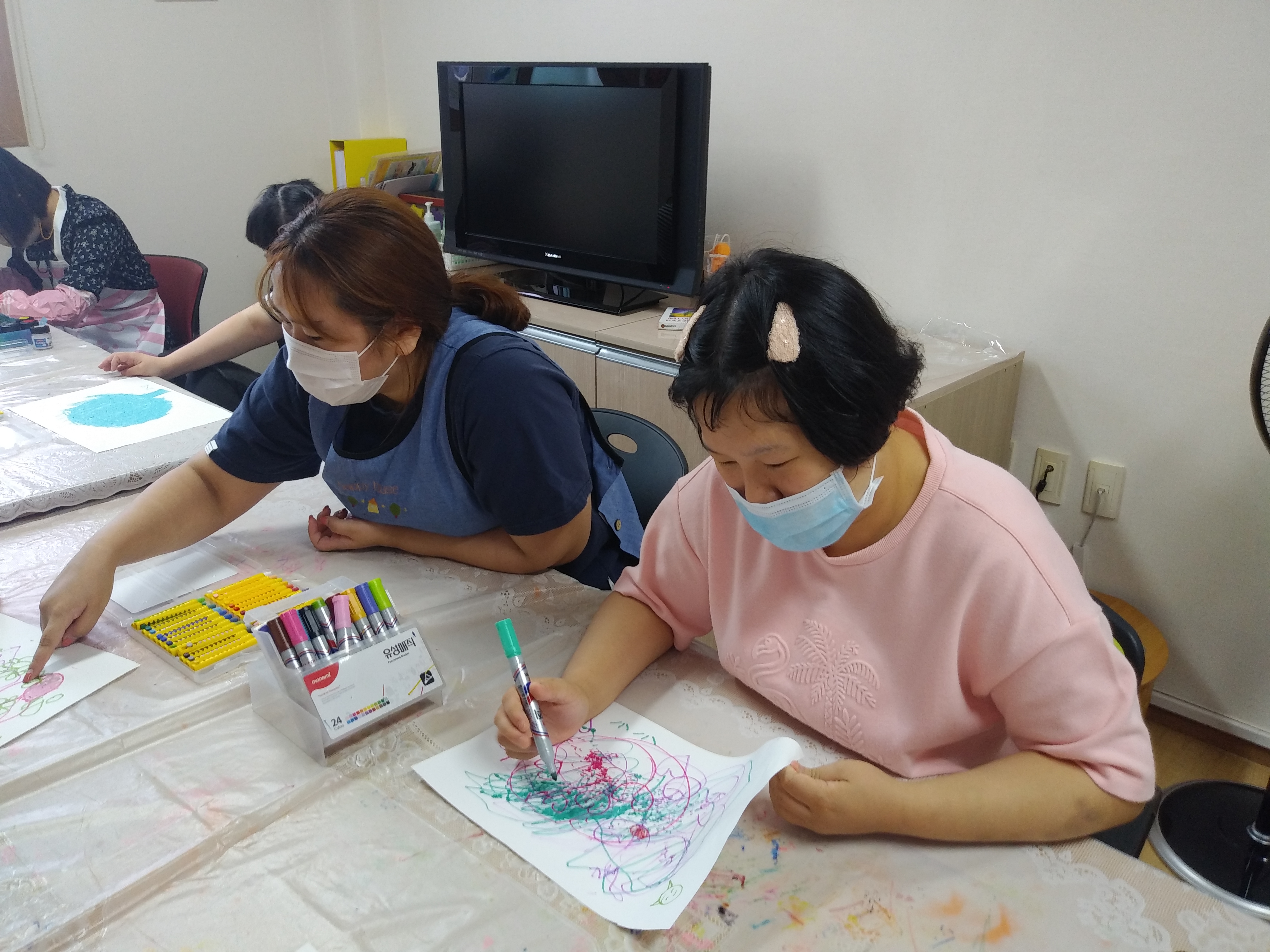 각 반에서 이용인들의 원하는 미술도구를 선택하여 그리고 싶은 그림을 그렸습니다.