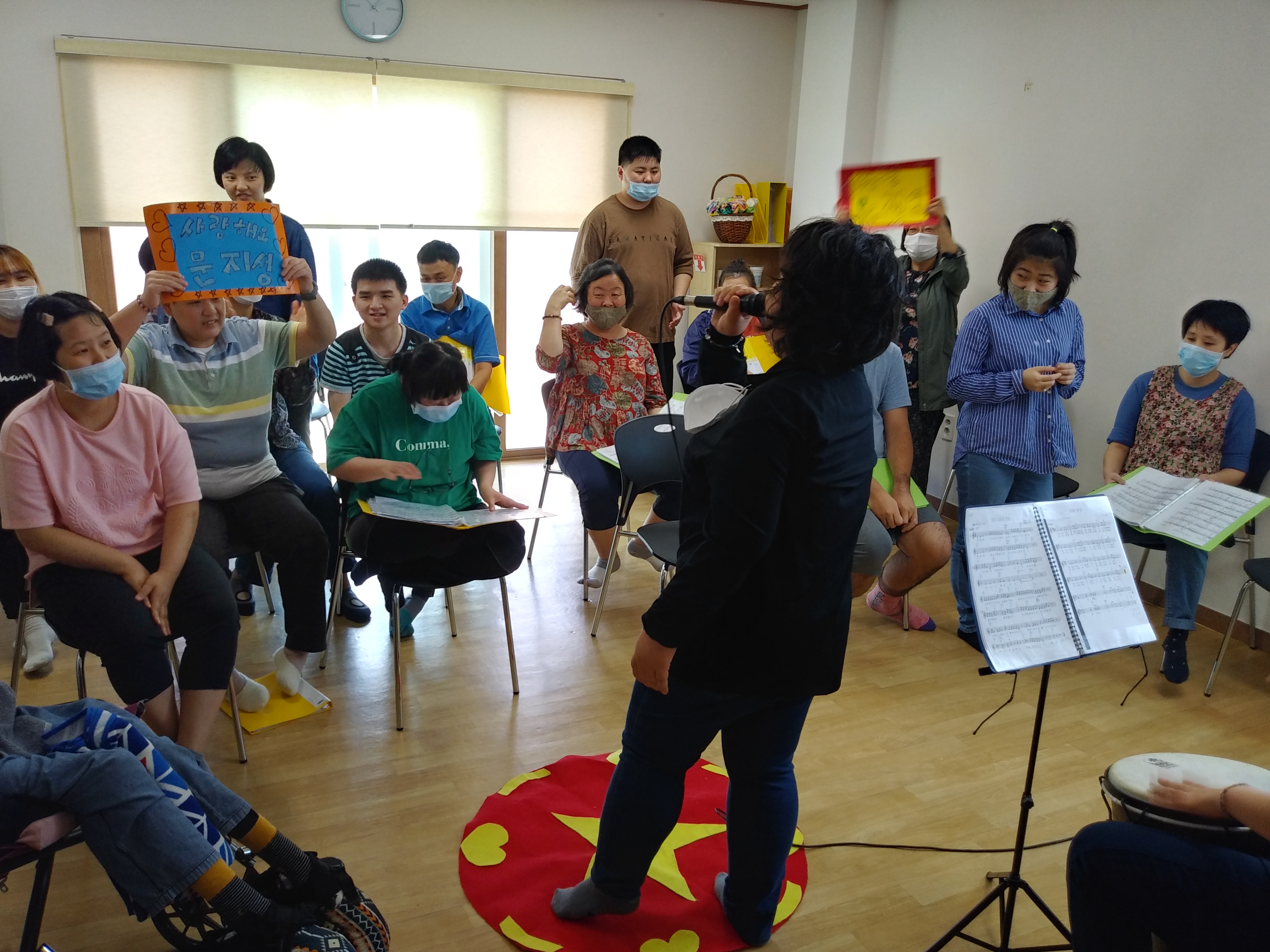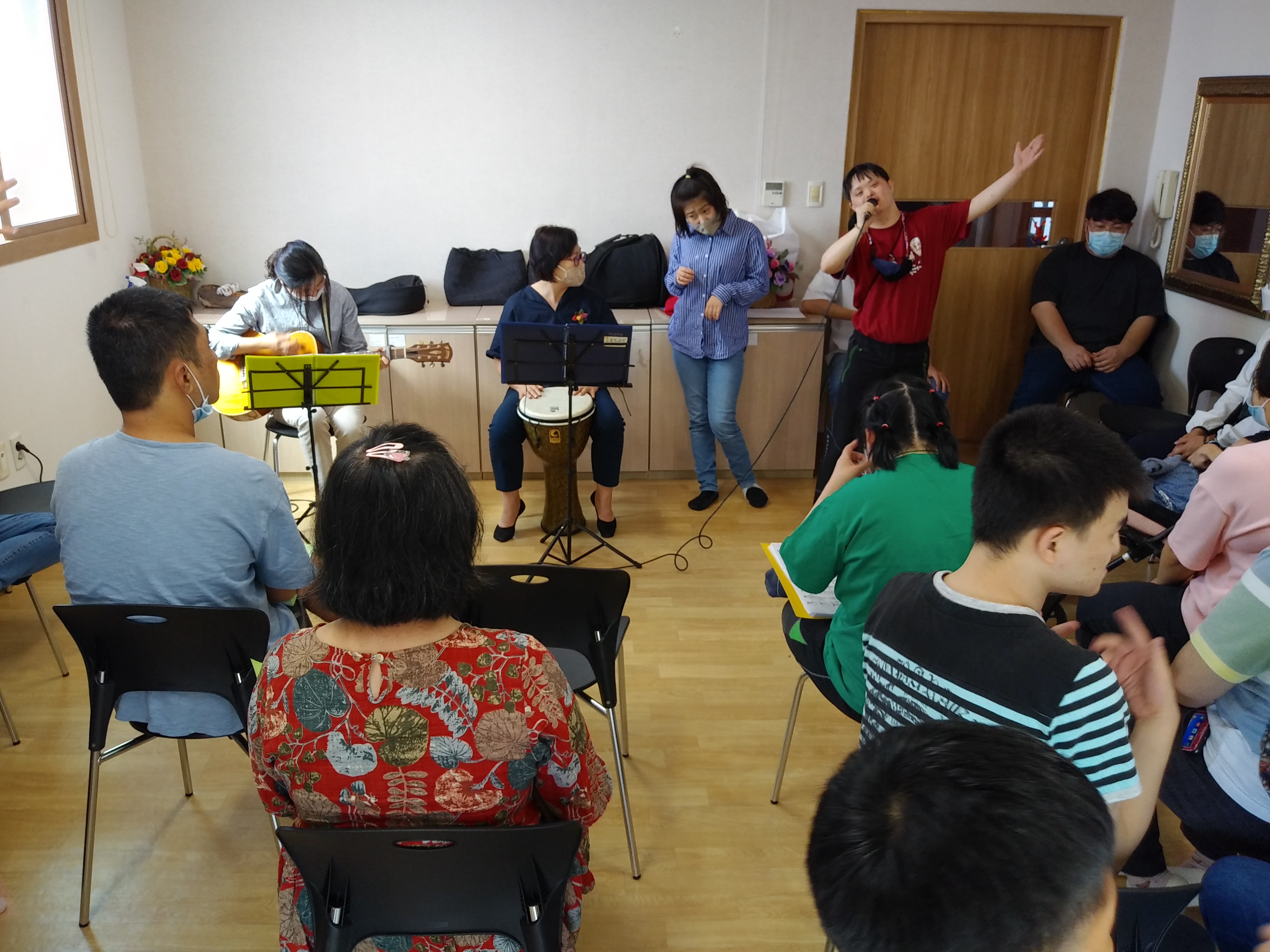 음악활동으로 끌림소리 강사님과 함께 노래 부르고 춤을 추며 즐거운 시간을 보냈습니다.