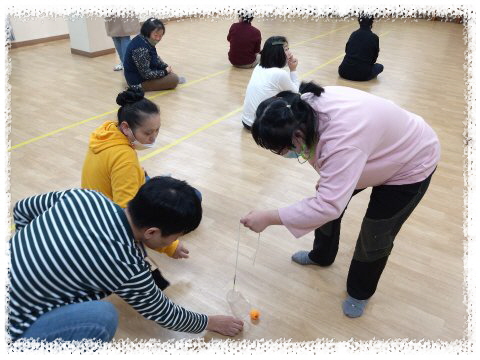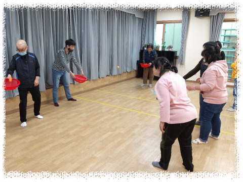 심리운동1으로 탁구공을 튕겨서 바구니에 넣기, 탁구공을 플라스틱컵으로 이동하기, 탁구공을 숟가락으로 옮기기등 다양한 놀이활동을 하였습니다.