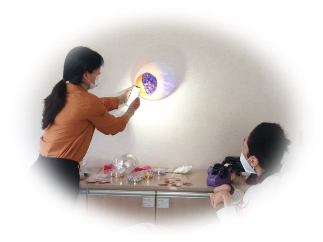 투명반구를 꾸미고 방울을 넣어 굴리며