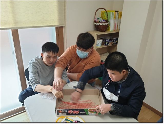 사발면 박스를 재활용해서 축구 운동장을 만들고