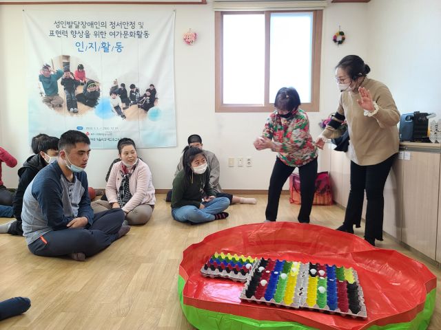 색깔계란판을 이용한 활동을 하였습니다. 활동 시작 전 스트레칭도 진행하고 있습니다.
